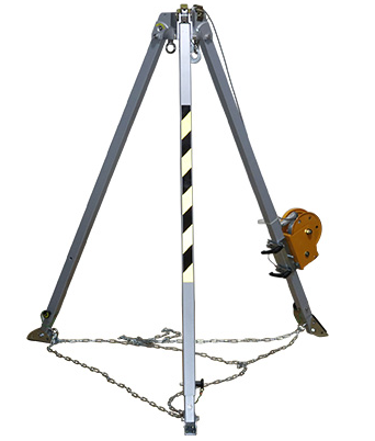 應急救援三腳架使用時,要選擇堅實平整的地面搭建,必要時使用墊板增加受力面積。其次,三條支架要均勻受力,確保整體結構穩定。最后,使用前要仔細檢查各連接部位是否牢固,并進行承重測試。